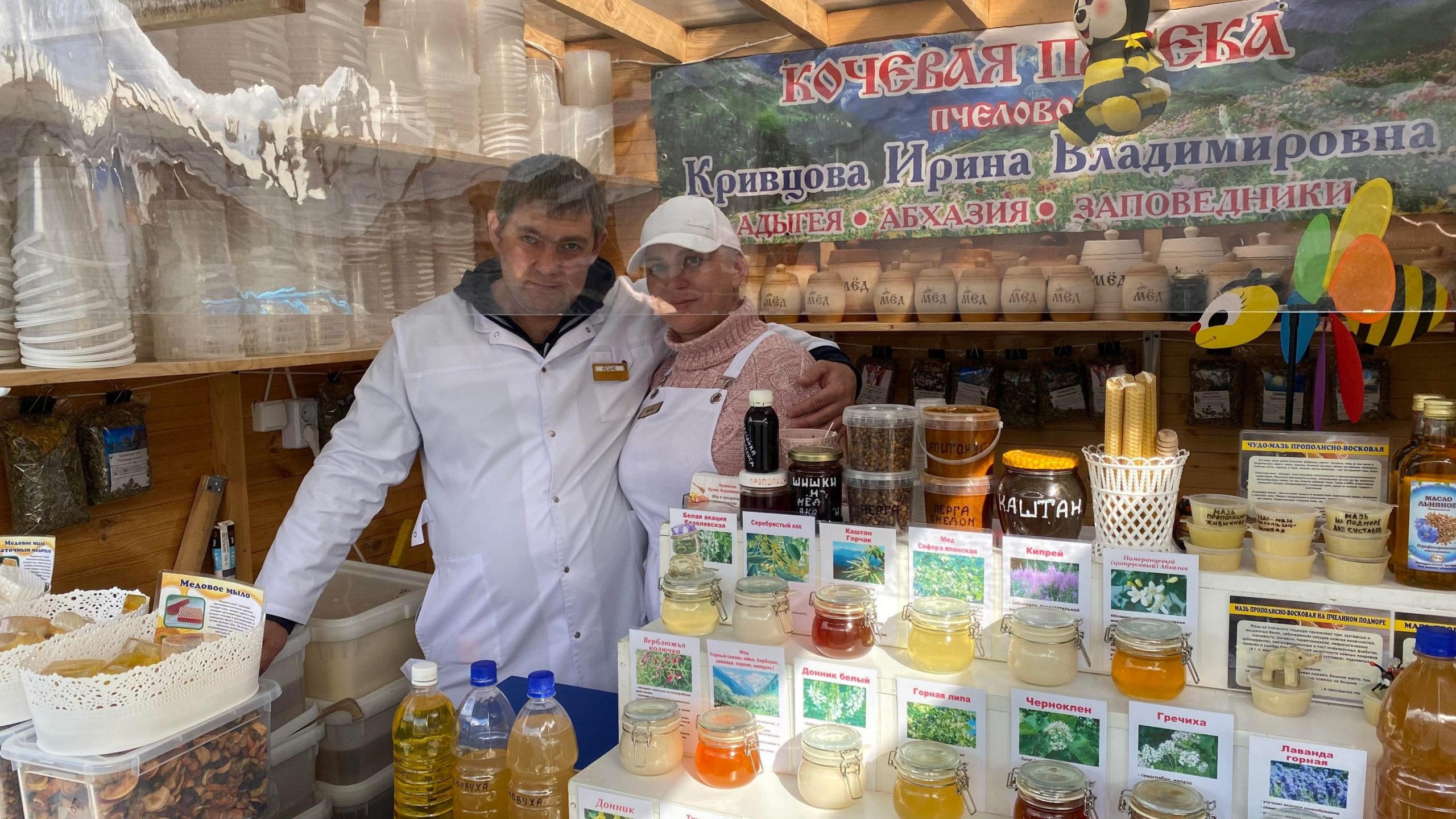 ハチミツを販売していた、養蜂業者の夫婦は製品を丁寧に詳しく説明してくれ、何種類ものハチミツを試食させてくれた。彼らは誇らしげに、ハチミツを毎日のように食べているからここ数年間病気になったことはなく、コロナにもかからなかったとハチミツが与える健康効果を語ってくれた。ロシアにはロシアン・ティーとして、紅茶を飲みながらジャムを舐めるのだが、ジャムの代わりにハチミツでもいい。また、ドライフルーツやクルミなどのナッツと一緒にハチミツを舐める、また最近急激に種類が増え、品質も向上した各種のチーズと一緒に様々なハチミツを一緒に食し、自分好みの組み合わせを何種類か見つける楽しさがあることも教えてくれた。
